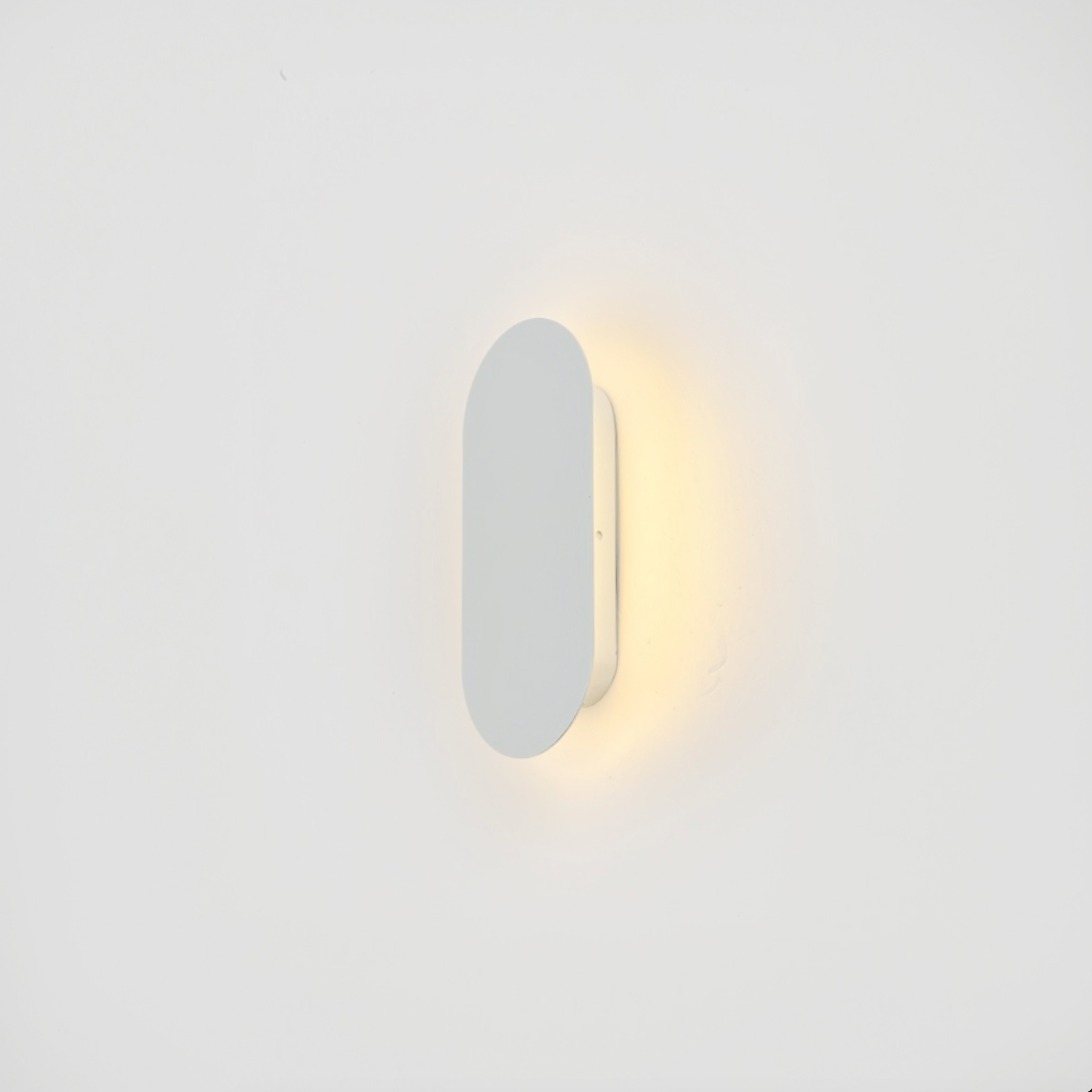 The Archie Wall Light presents a contemporary design that effortlessly blends quality craftsmanship with subtle illumination. Featuring a backlit geometric pill-shaped surface, it casts a soft, ambient glow that highlights the beauty of the fixture.