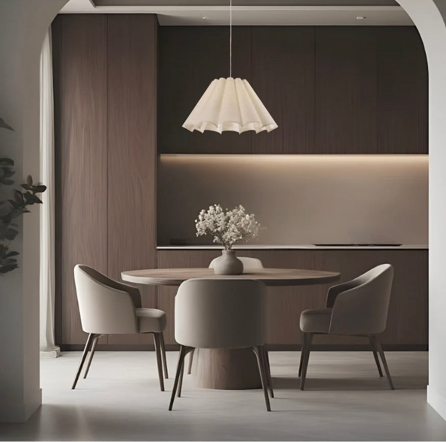 The Henrick 1L Pendant offers a modern yet timeless look with its round, scalloped flax linen shade. The soft yet textured fabric wraps around the fixture, creating an elegant visual flow that will add warmth to any environment.